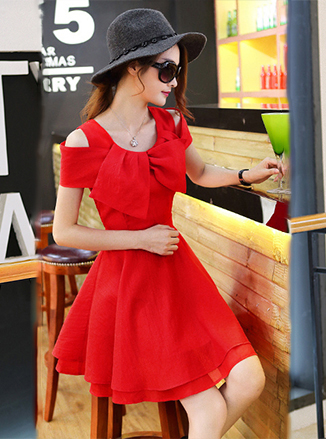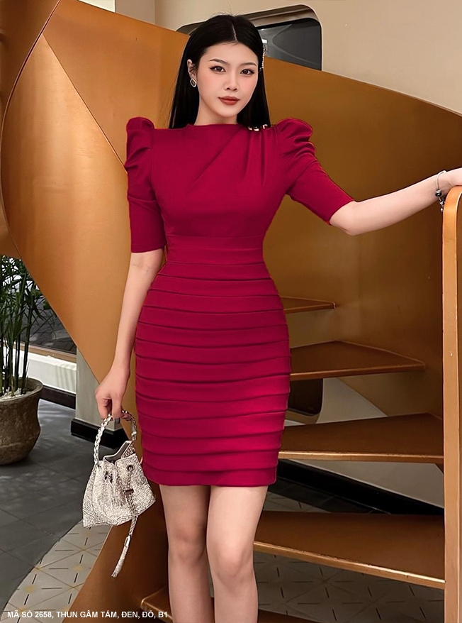 ĐẦM ÔM CỔ TIM TAY NGẮN DÚN EO