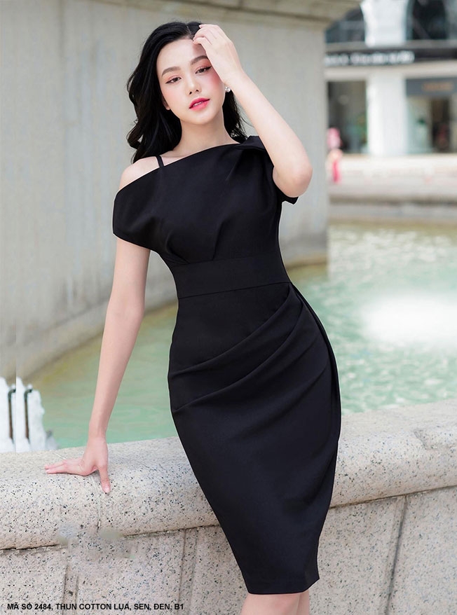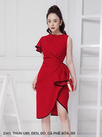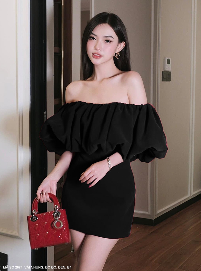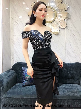 ĐẦM ÔM TRỄ VAI ĐÍNH KIM SA VÁY DÚN BÈO BÊN EO
