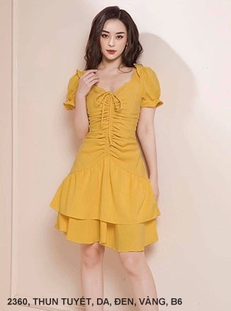 ĐẦM TAY NGẮN THẮT NƠ CỔ DÚN 2 TẦNG