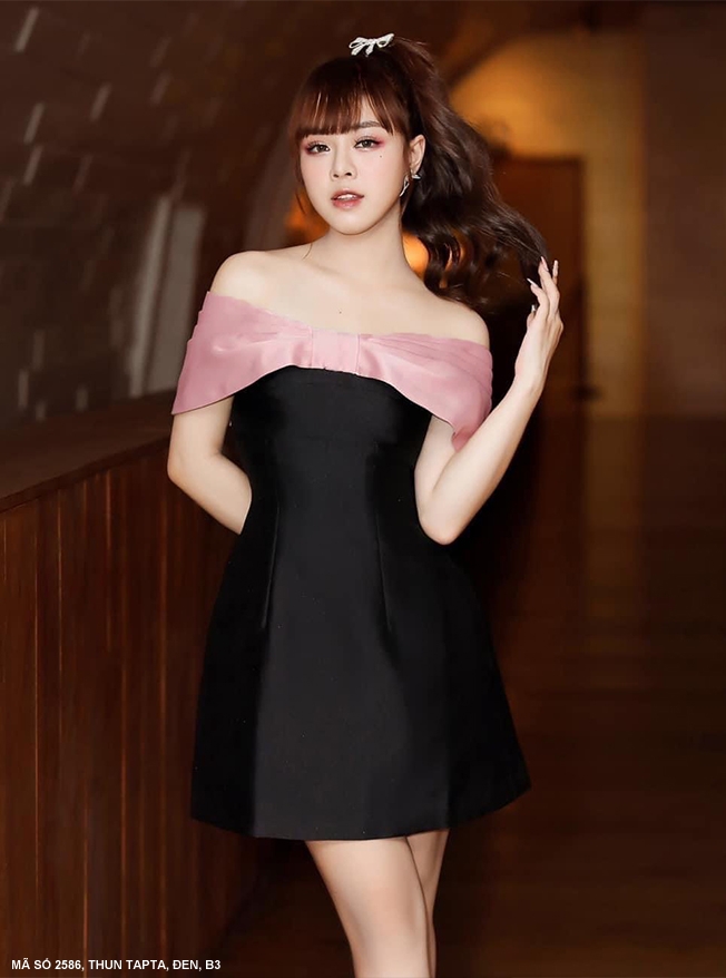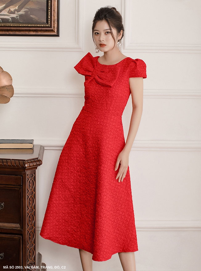 ĐẦM GẤM CỔ THUYỀN ĐÍNH NƠ CỔ SANG TRỌNG