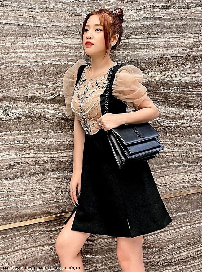 ĐẦM CỔ TIM XẺ VAI KẾT HẠT SANG TRỌNG