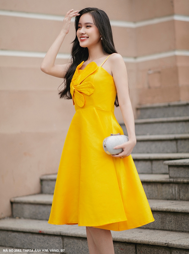 ĐẦM XÒE SÁT NÁCH EO THẮT NƠ HOA