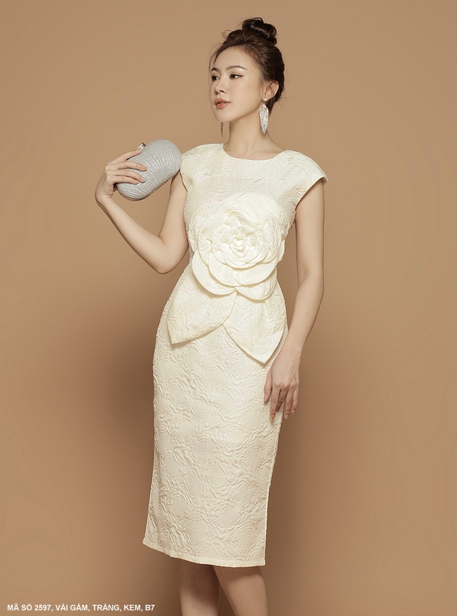 ĐẦM DỰ TIỆC GẤM HOA HỒNG LỚN TRƯỚC NGỰC SANG TRỌNG