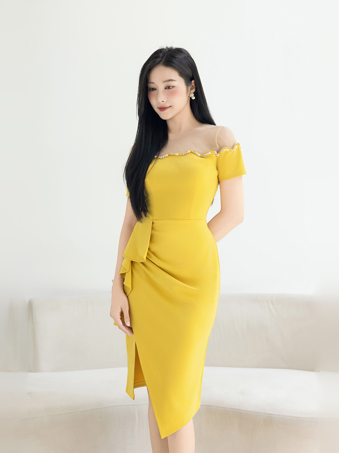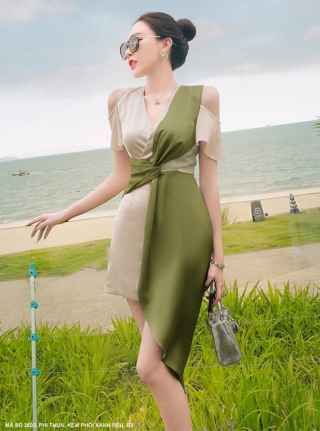 ĐẦM ÔM SÁT NÁCH CỔ V DÚN 1 BÊN EO