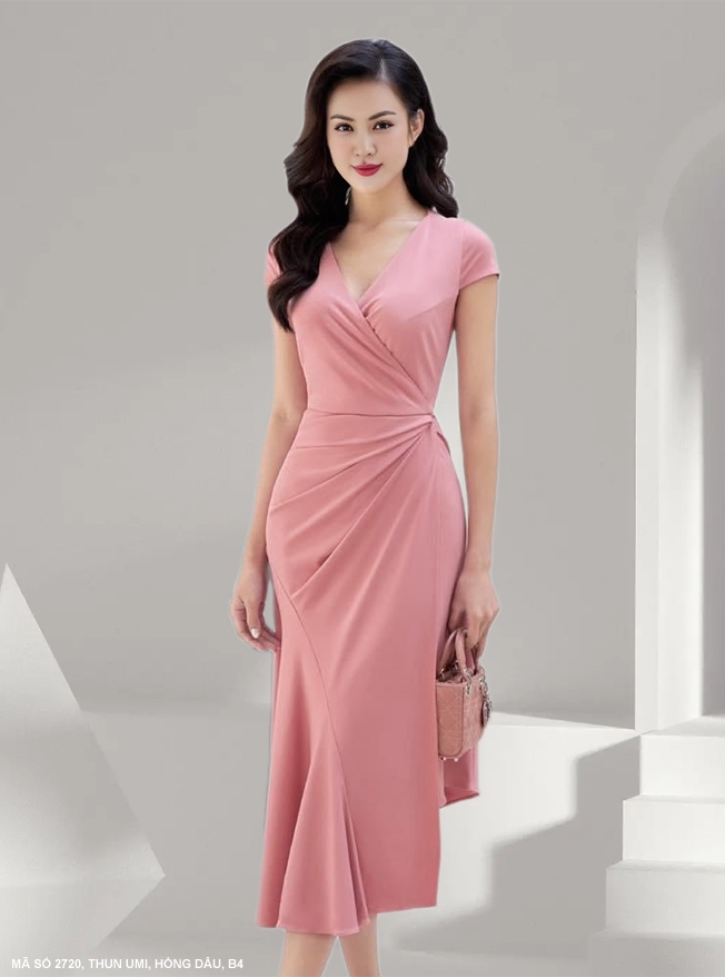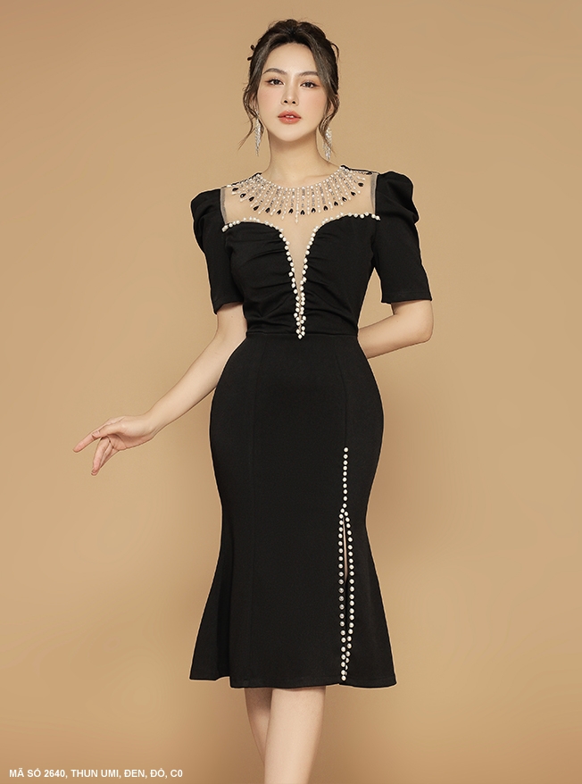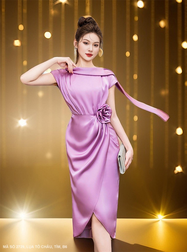 ĐẦM ÔM TAY NGẮN CỔ TIM LAI BÚP SEN