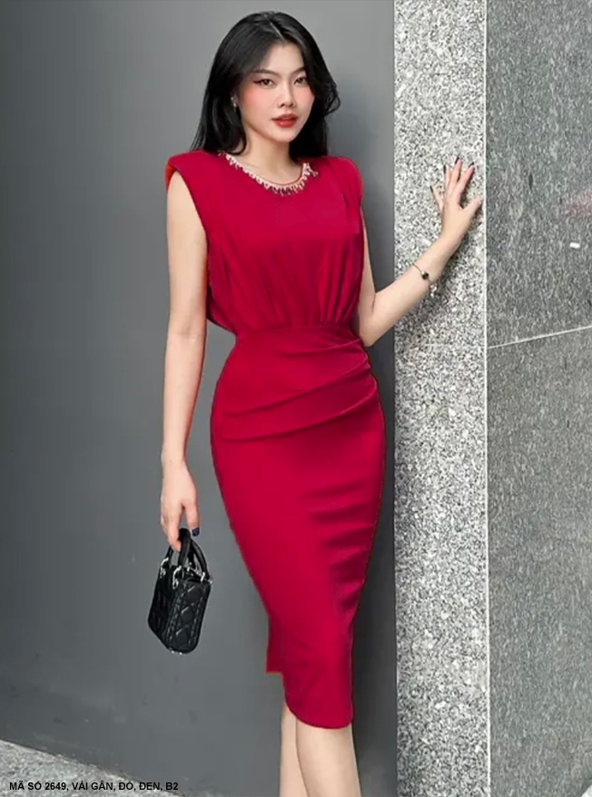 ĐẦM ÔM CỔ ĐỔ SAU LƯNG PHÍA TRƯỚC ĐÍNH HẠT XOÀN