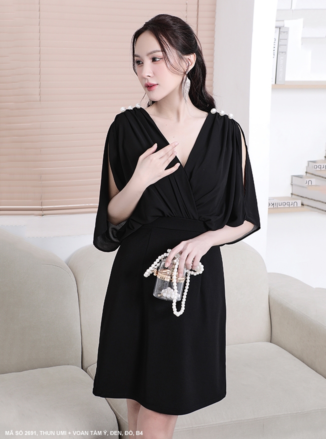 ĐẦM DẠ HỘI ĐÍNH HOẠT XOÀN CỔ GIỌT NƯỚC