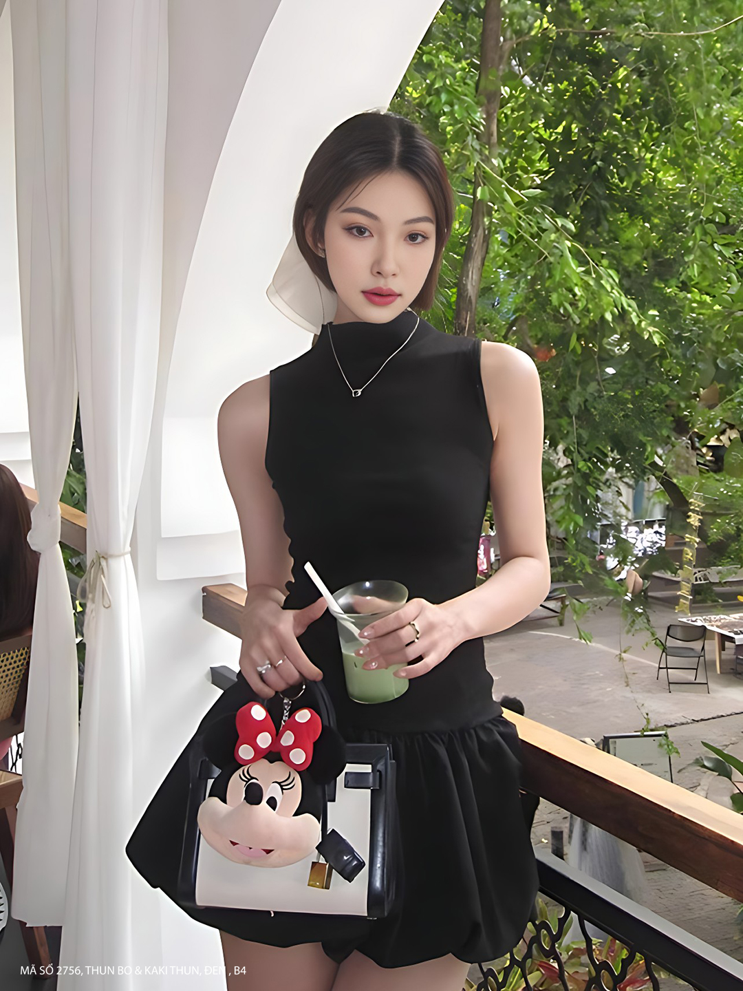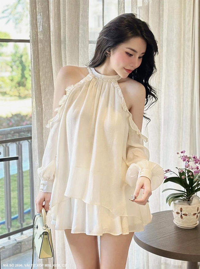 ĐẦM ÔM CỔ LỌ TAY LỠ VAI PHỒNG VÁY XẾP LY QUYẾN RŨ