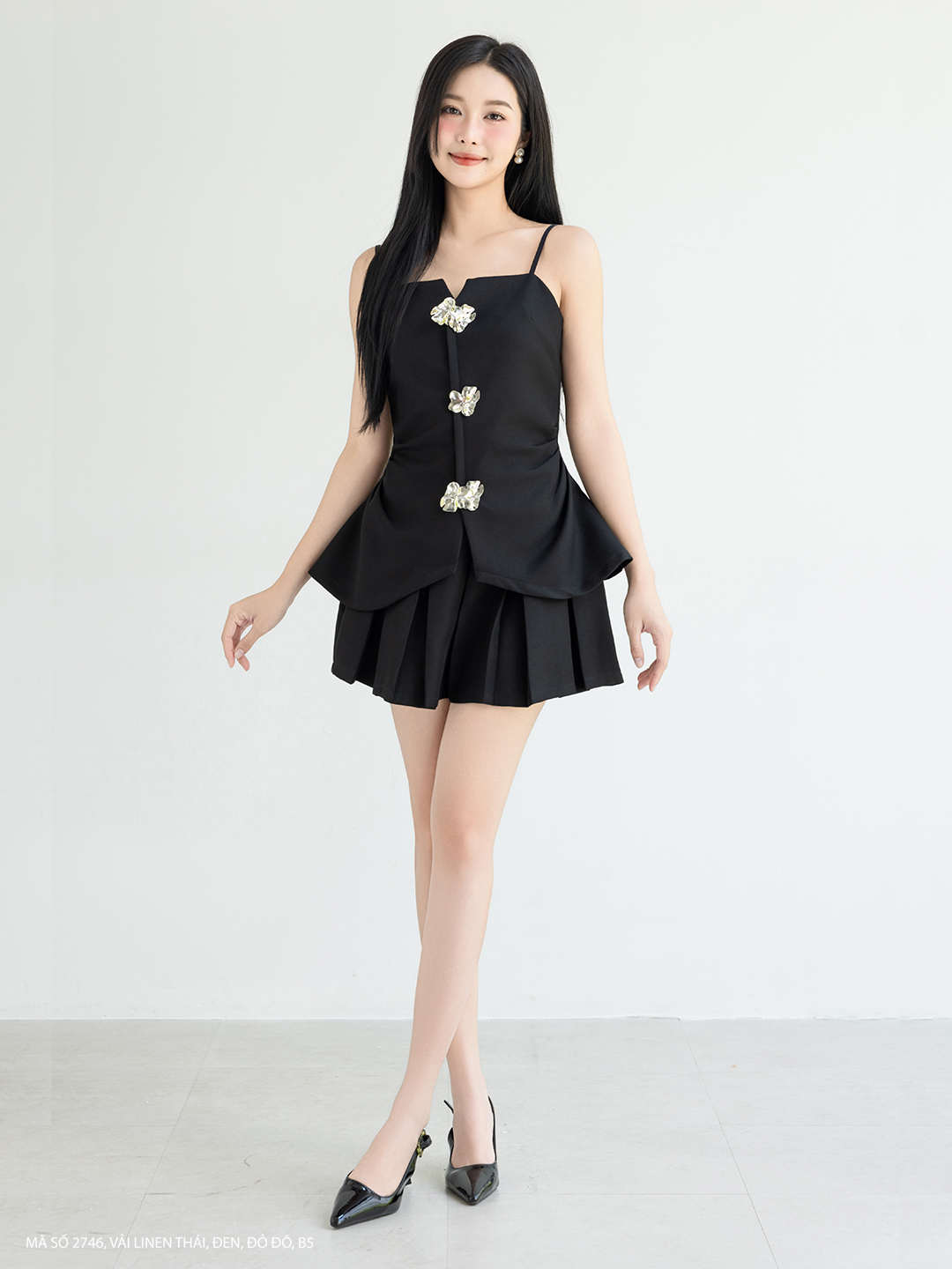 BỘ SHORT CỔ VEST VAI XÉO ĐÍNH NGỌC TRAI