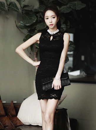 ĐẦM REN CỔ LỌ ĐÍNH CHUỖI NGỌC TRAI